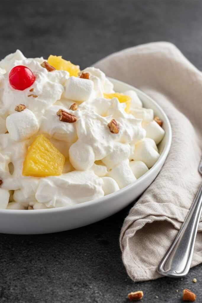 - The 2-hour resting period in the refrigerator isn’t just to chill the salad; it allows the dry mini marshmallows to absorb moisture from the dressing, softening them to the perfect pillowy texture.