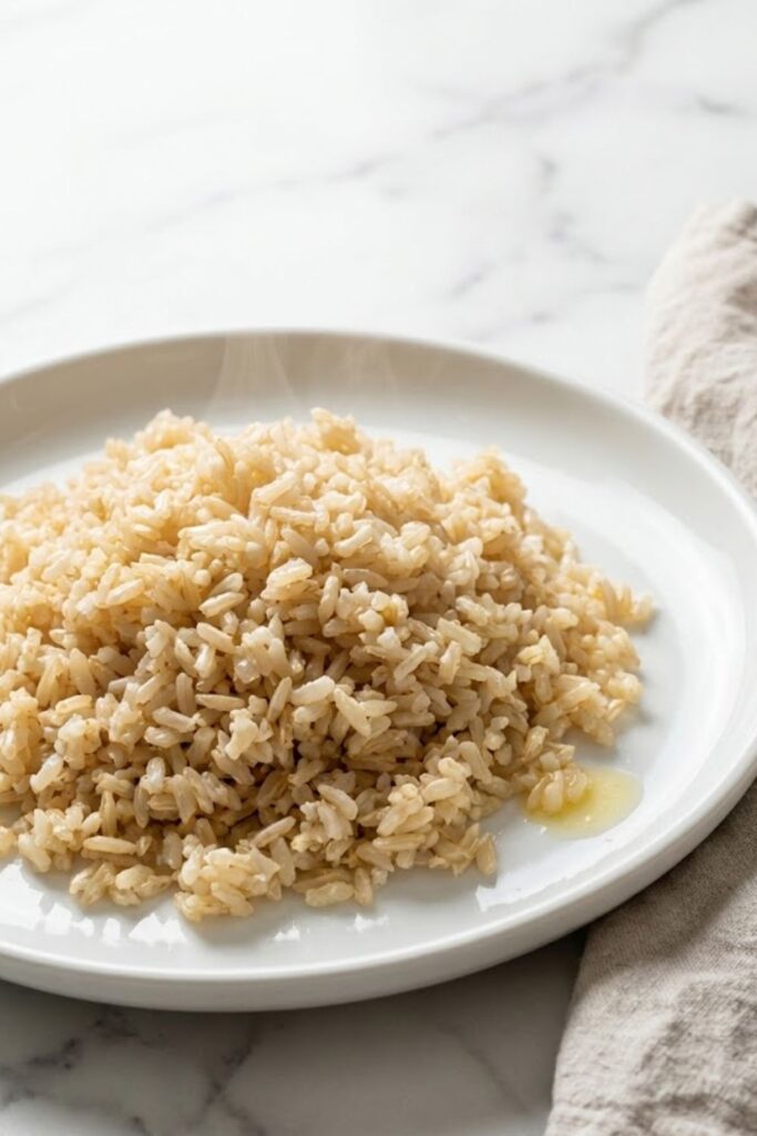 - No peeking: Do not open the oven or the foil during the hour. Brown rice needs consistent temperature and moisture.