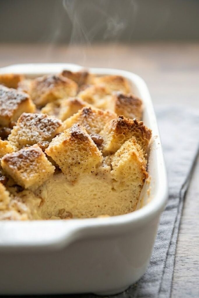 - Bake: Grease a 9×13 inch baking dish (or individual ramekins) with butter. Transfer the soaked bread mixture into the dish. Bake at 325°F for 35–45 minutes, or until the custard is set and the top is puffed and golden brown.