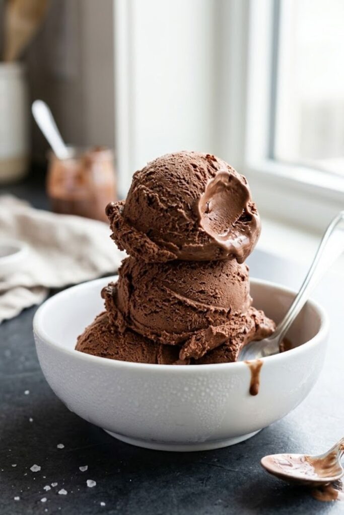 This dense chocolate ice cream pairs beautifully with a tart fruit element, such as fresh raspberries or a warm berry compote, to cut through the richness. It also works perfectly inside a homemade waffle cone or sandwiched between two chewy peanut butter cookies for a decadent treat.