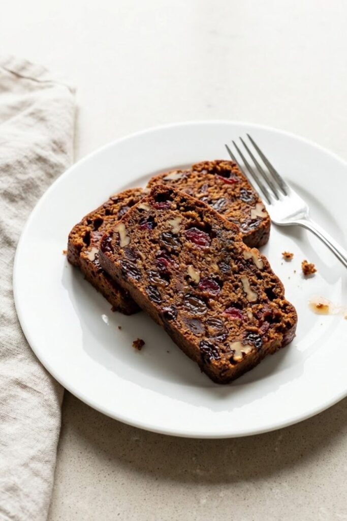 A modern, flavorful take on fruitcake using dried fruits rehydrated in rum, butter, and spices, resulting in a moist loaf that improves with age.