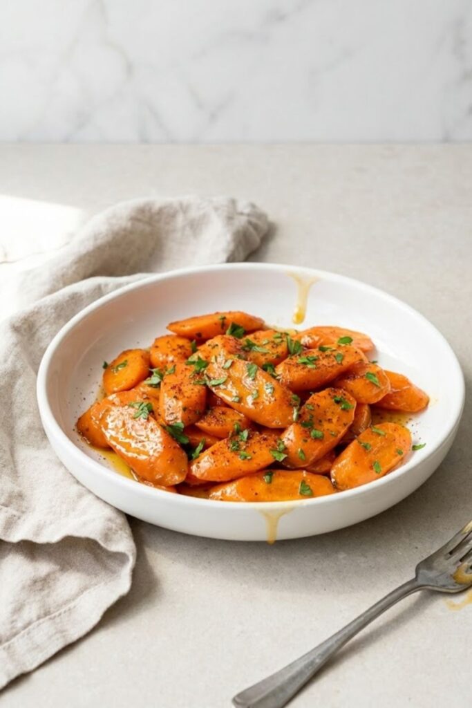 This sticky, glossy Alton Brown Glazed Carrots recipe is made with fresh carrots, ginger ale, and a pinch of chili powder, ready in just 20 minutes. The hero moment happens when the ginger ale reduces down to a thick, glossy syrup that clings to every slice. I love this dish because it transforms a humble root vegetable into something exciting enough for a holiday table.