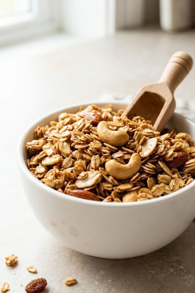 - Adding fruit last: Never bake the raisins. If you add dried fruit before baking, it will become hard, dry, and chewy. Always toss them in while the granola is hot, fresh out of the oven.