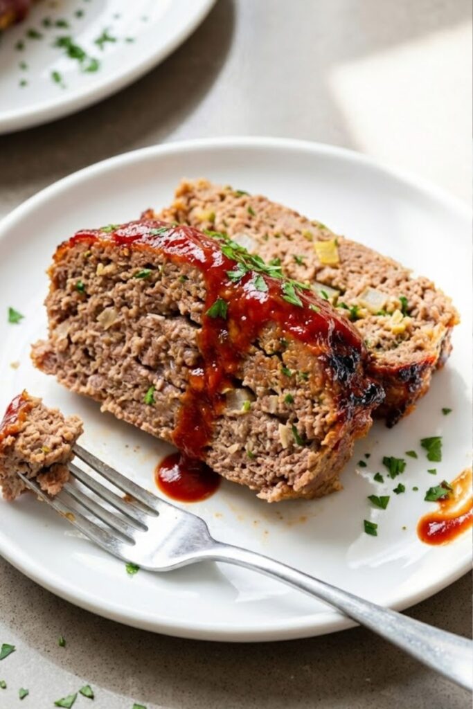 A flavorful and tender meatloaf packed with sautéed onions and Italian herbs, finished with a classic sweet and tangy ketchup glaze.