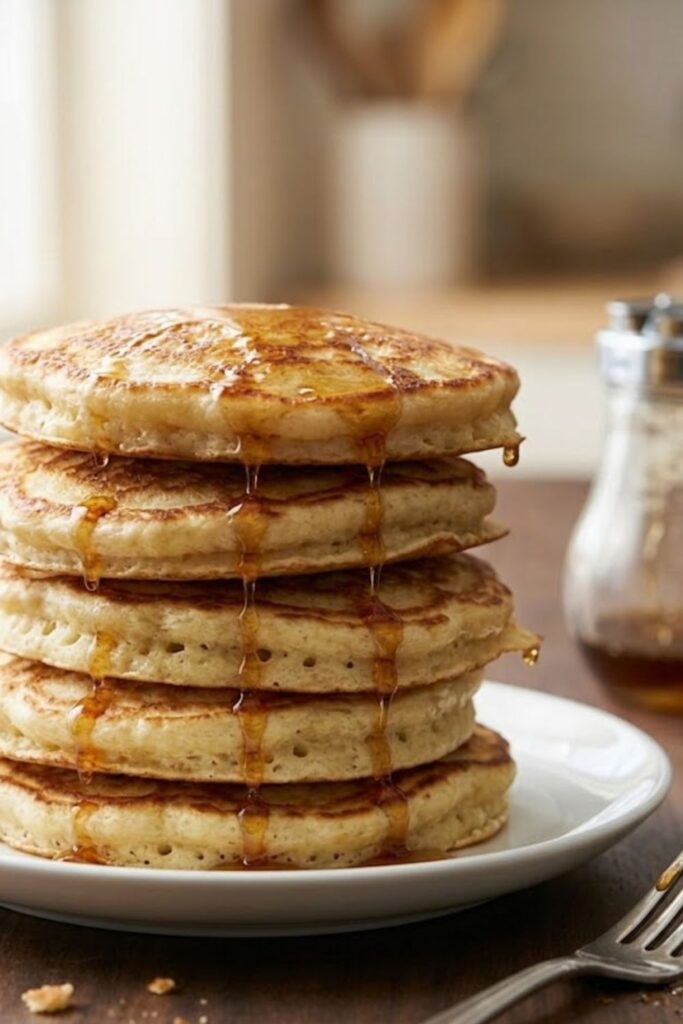 These pancakes are rich enough to stand alone, but they pair beautifully with crispy thick-cut bacon or savory breakfast sausage to balance the sweetness. For toppings, warm maple syrup is a must, but fresh blueberries or a dollop of whipped cream add a fresh, bright contrast to the buttery crumb.