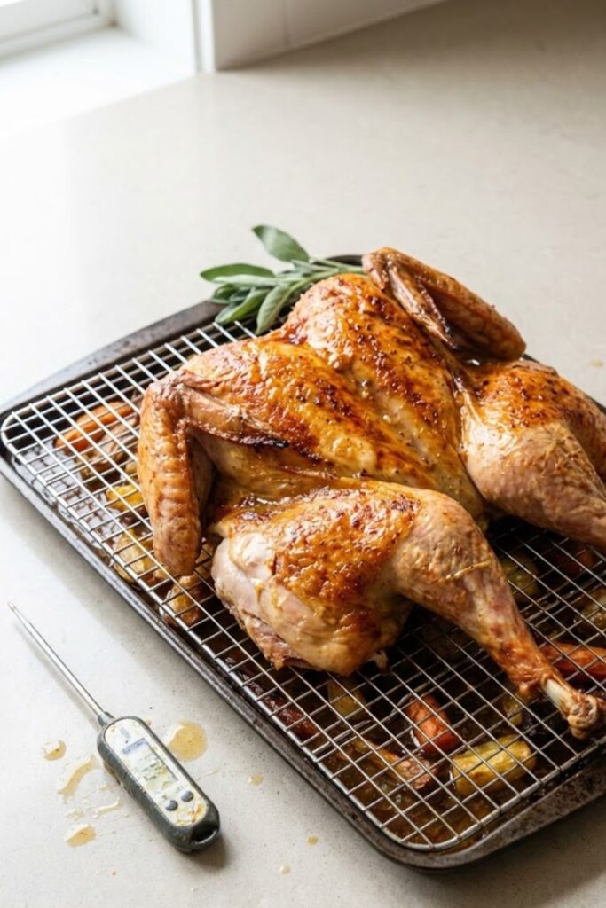 - Temperature pull: Pulling the bird at 150°F seems low, but it is scientifically crucial. The heat momentum (carryover cooking) will finish the bird to 165°F while it rests. If you pull it at 165°F, it will be dry by the time you carve it.
