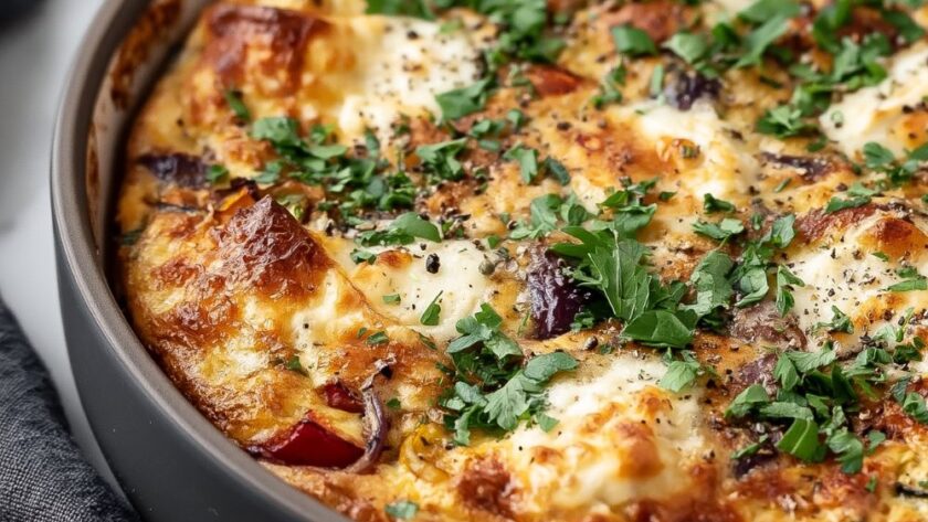 Barefoot Contessa Roasted Vegetable Frittata Recipe combines Mediterranean courgettes and peppers with creamy goat cheese for a light vegetarian brunch. This colourful dish uses oven-roasted red onion and Parmesan to create a deep, savoury base.