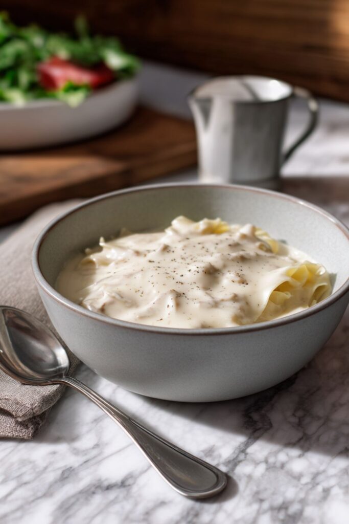 A quick, 10-minute homemade Alfredo sauce that uses heavy cream, butter, and garlic to create a rich, restaurant-quality topping for pasta and meats.