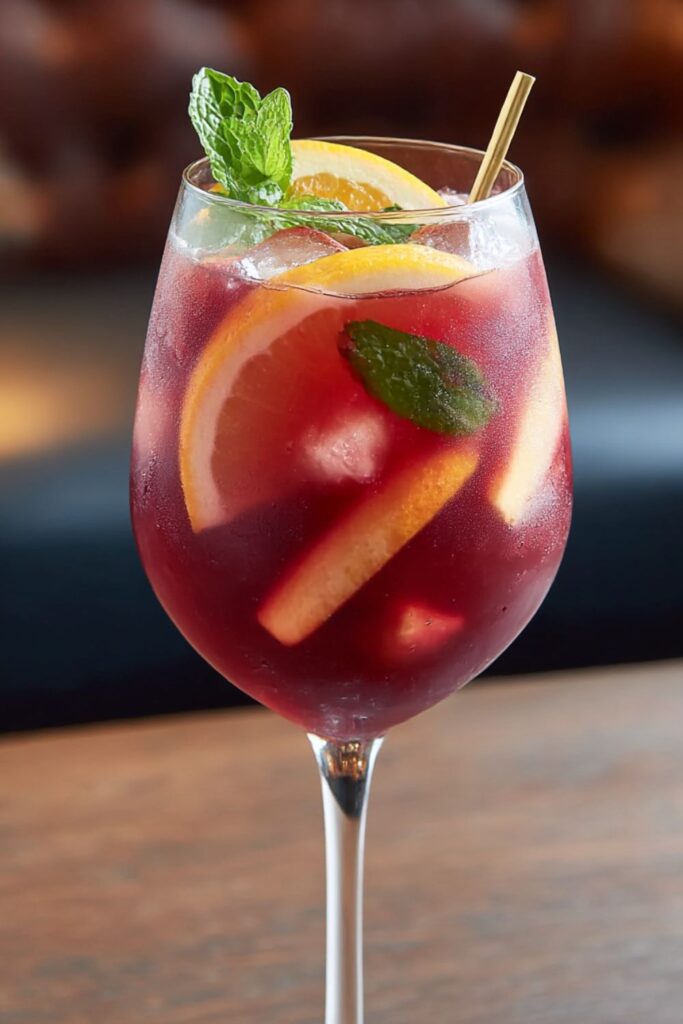 - Add Fruits & Mint: Stir in the mint sprigs, lemon, lime, and orange slices.