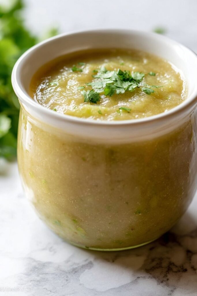 This Bobby Flay Green Chile Applesauce Recipe is a smoky and zesty recipe, which calls for roasted tomatillos and mild poblano peppers. It’s a versatile condiment, ready in about 30 minutes.