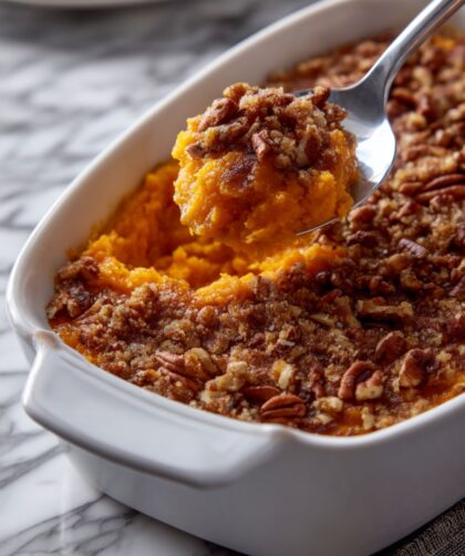 Joanna Gaines Sweet Potato Casserole is made with tender mashed sweet potatoes enriched with butter, milk, and vanilla, then crowned with a buttery, crunchy brown …
