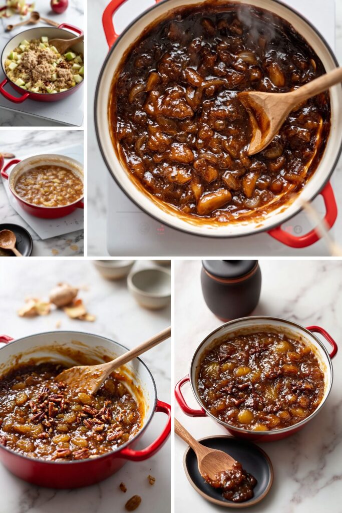 Simmering it slowly allows the raisins to plump up and the apples to hold their shape without turning into mush. Adding toasted pecans at the very end keeps a necessary crunch.