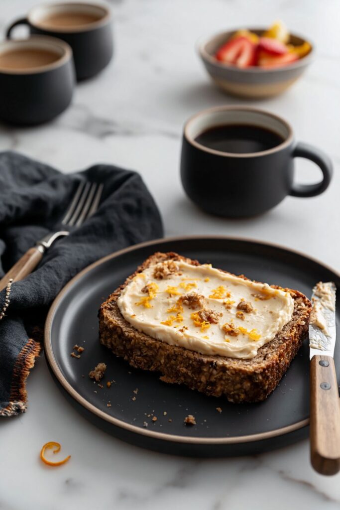 This spiced bread is fantastic on its own alongside a hot cup of black coffee or Earl Grey tea. I also like pairing it with fresh fruit, such as sliced strawberries or segmented oranges, to complement the citrus spread.