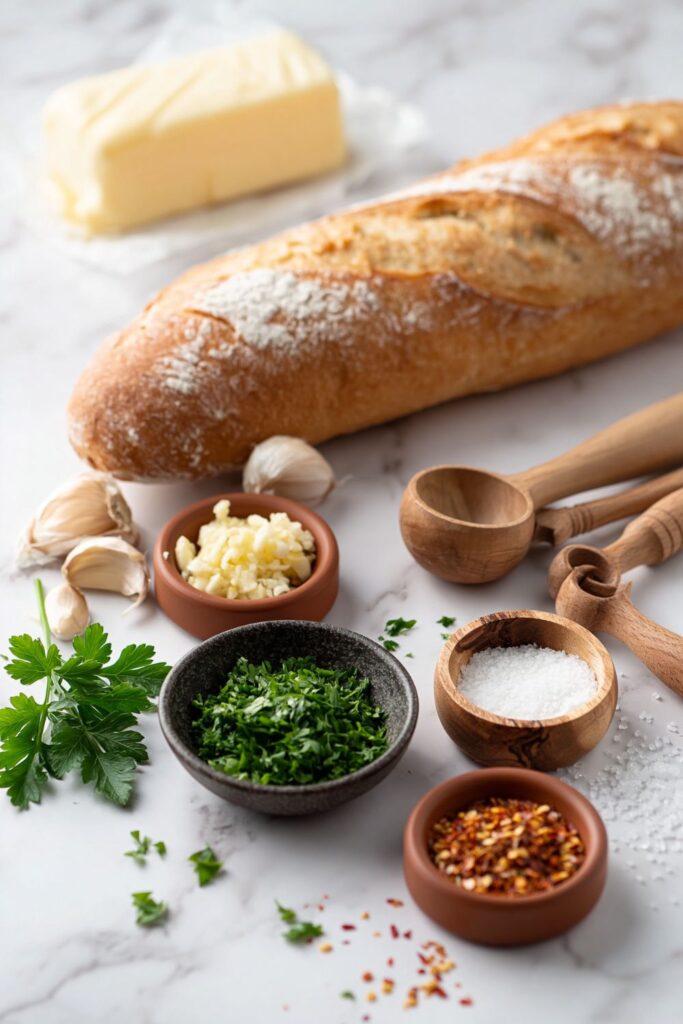 Crisp, golden garlic bread made with French baguette spread with butter, fresh garlic, and parsley, baked until the edges turn crunchy.