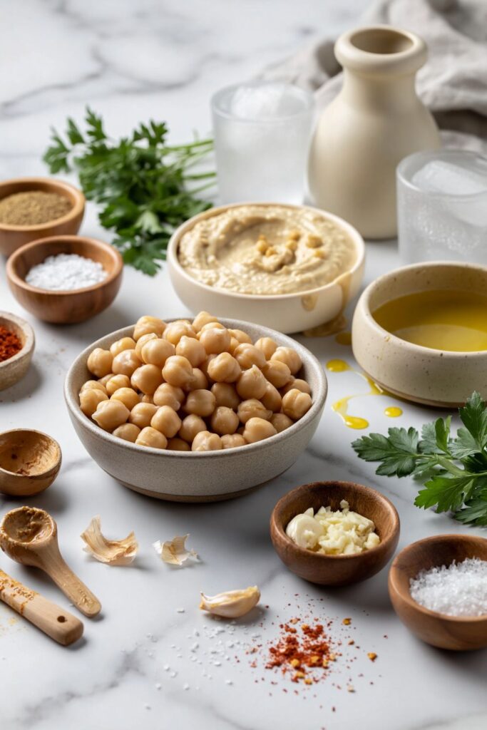 Use cold water. Adding ice-cold water during the final blending stage shocks the fats in the tahini and oil, which turns the hummus into a light, mousse-like consistency. Do not use room temperature water or the dip will stay dense and heavy.