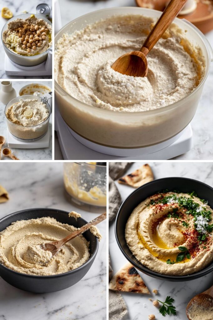 - Adjust the seasoning: Stop the processor and taste the hummus to see if it needs more salt or a squeeze of extra lemon. Blend for another 10 seconds to make sure any added seasoning is fully mixed through the dip.