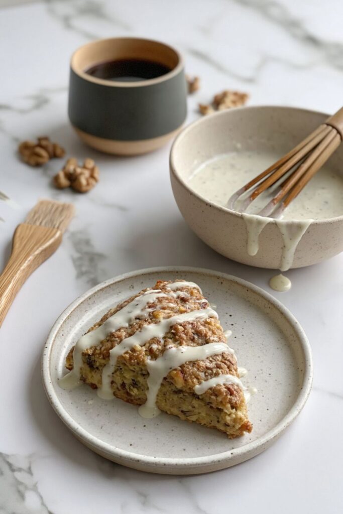 - Drizzle glaze over warm scones and let set for 15 minutes.