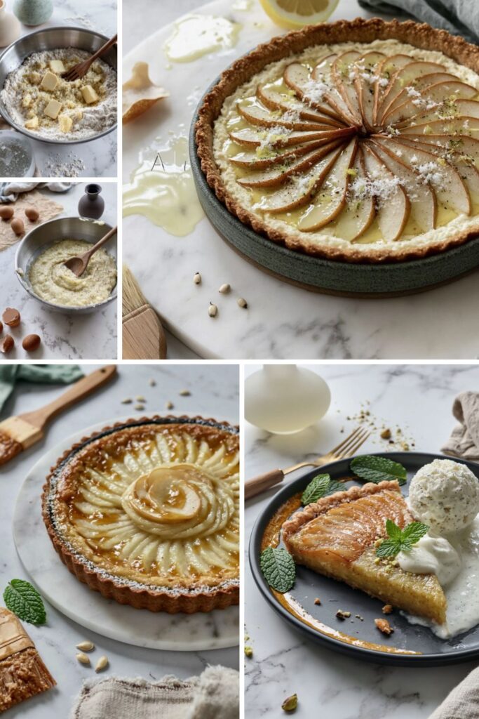 - Assemble the tart: Spread the almond cream in an even layer over the bottom of the cooled pastry case. Lay the pear slices on top of the cream in a circular pattern, overlapping them slightly like a fan. Brush the fruit with lemon juice so the slices do not turn brown before they hit the heat.
