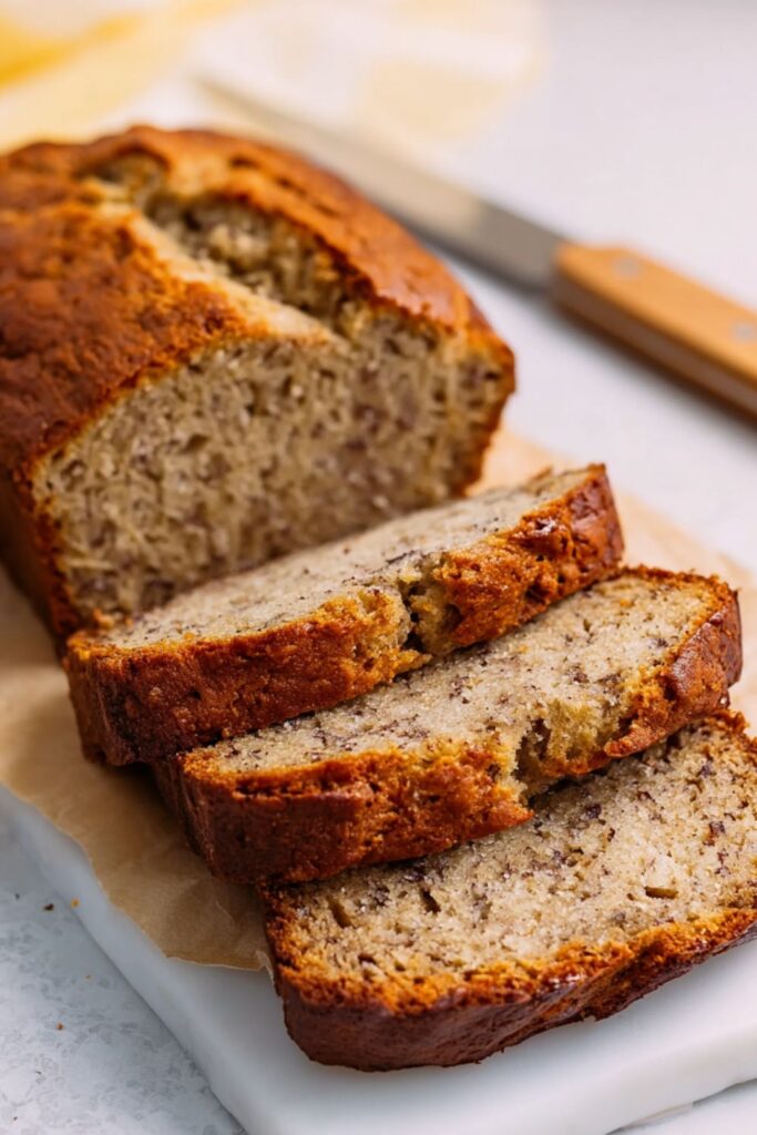 A simple, rustic banana bread featuring brown sugar and plenty of ripe bananas for a moist, comforting texture.