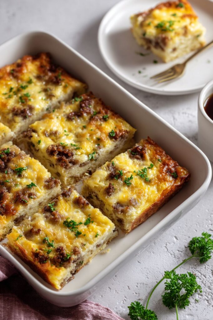 A hearty, crowd-pleasing casserole layered with hash browns, sausage, and cheese, soaked in a rich cream-and-egg custard.