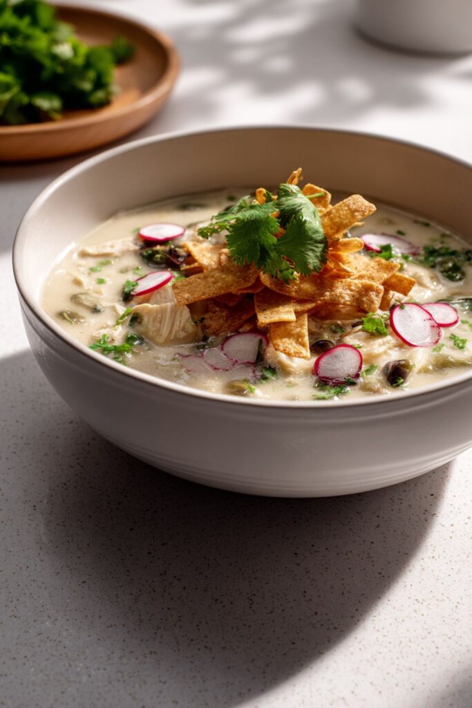 - Finish the dish: Stir in the fresh cilantro just before serving. Ladle into bowls and top generously with crispy tortilla strips and sliced radishes for texture.
