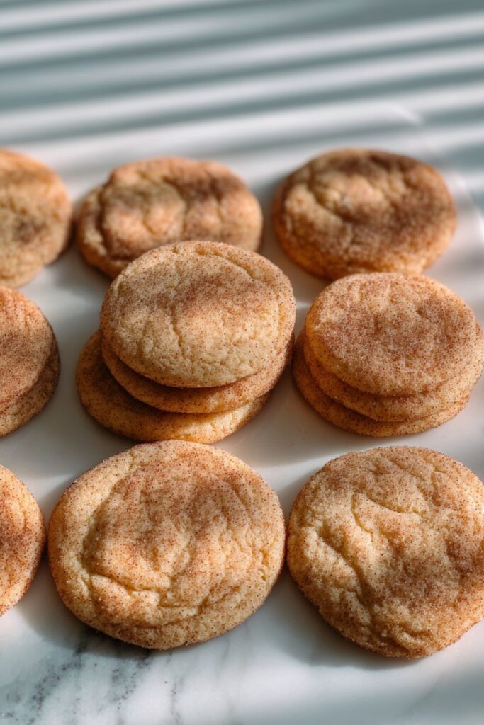 Yes. Snickerdoodles typically use cream of tartar and white sugar for a tangy, pillowy texture. These use brown sugar and baking soda for a denser, fudgier, toffee-like texture that mimics a fried dough interior.
