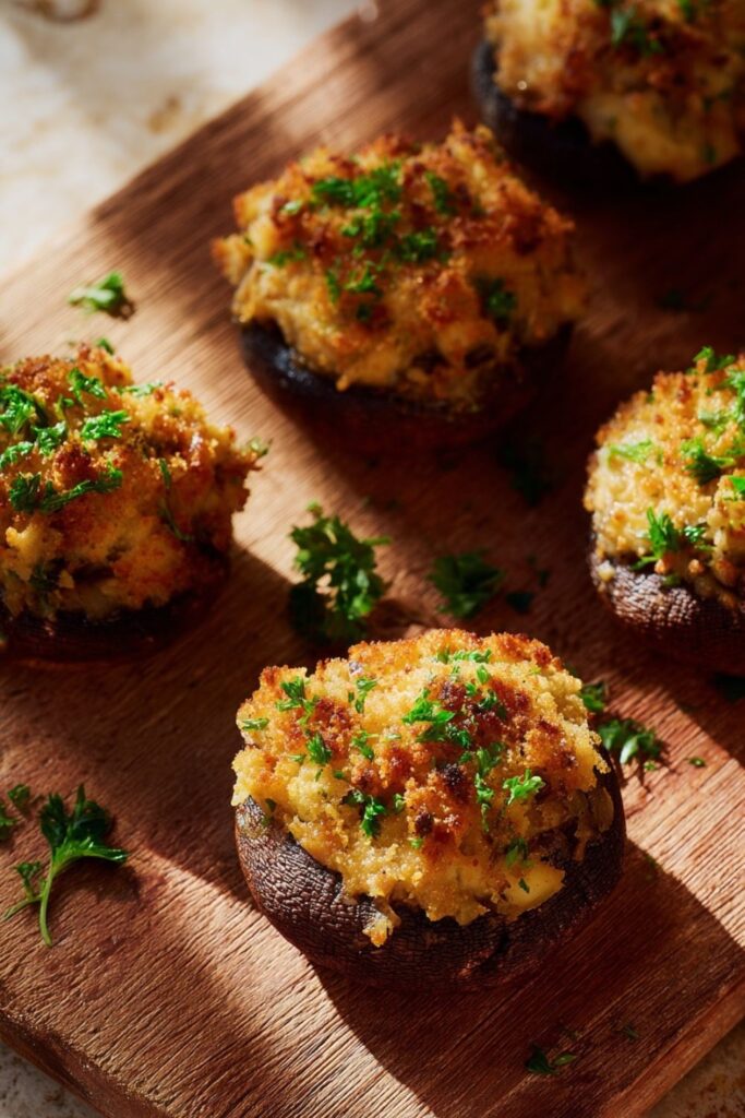 You can stuff the mushrooms up to 24 hours in advance and keep them covered in the fridge. Add the panko topping just before baking to ensure it stays perfectly crispy.